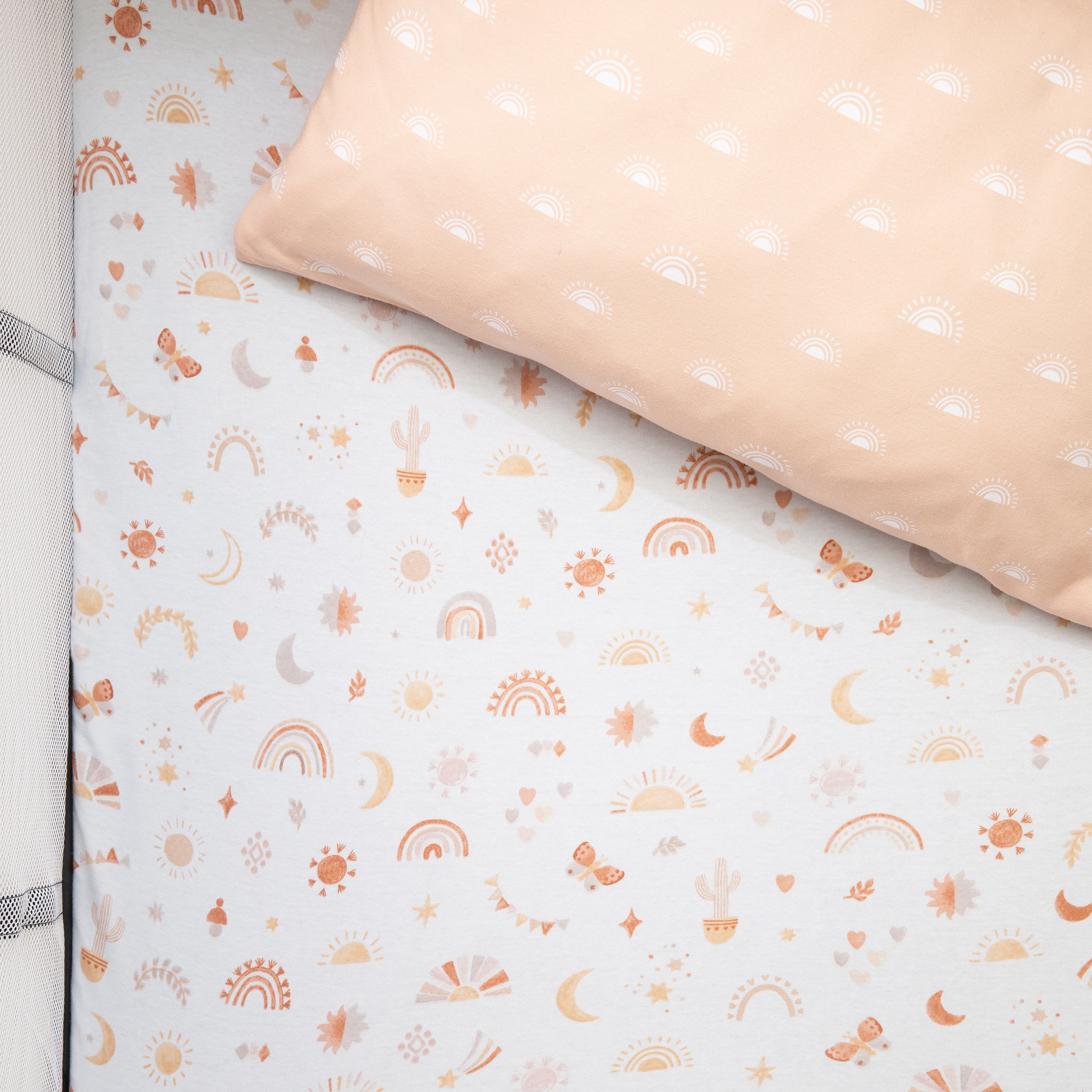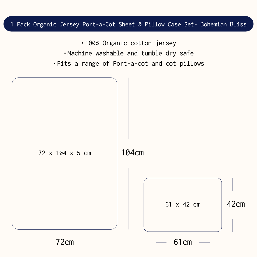 Organic Port-a-Cot Fitted Sheet & Pillowcase - Bohemian Bliss