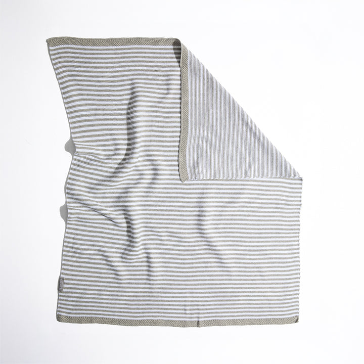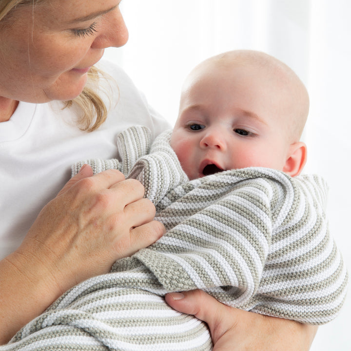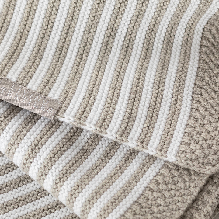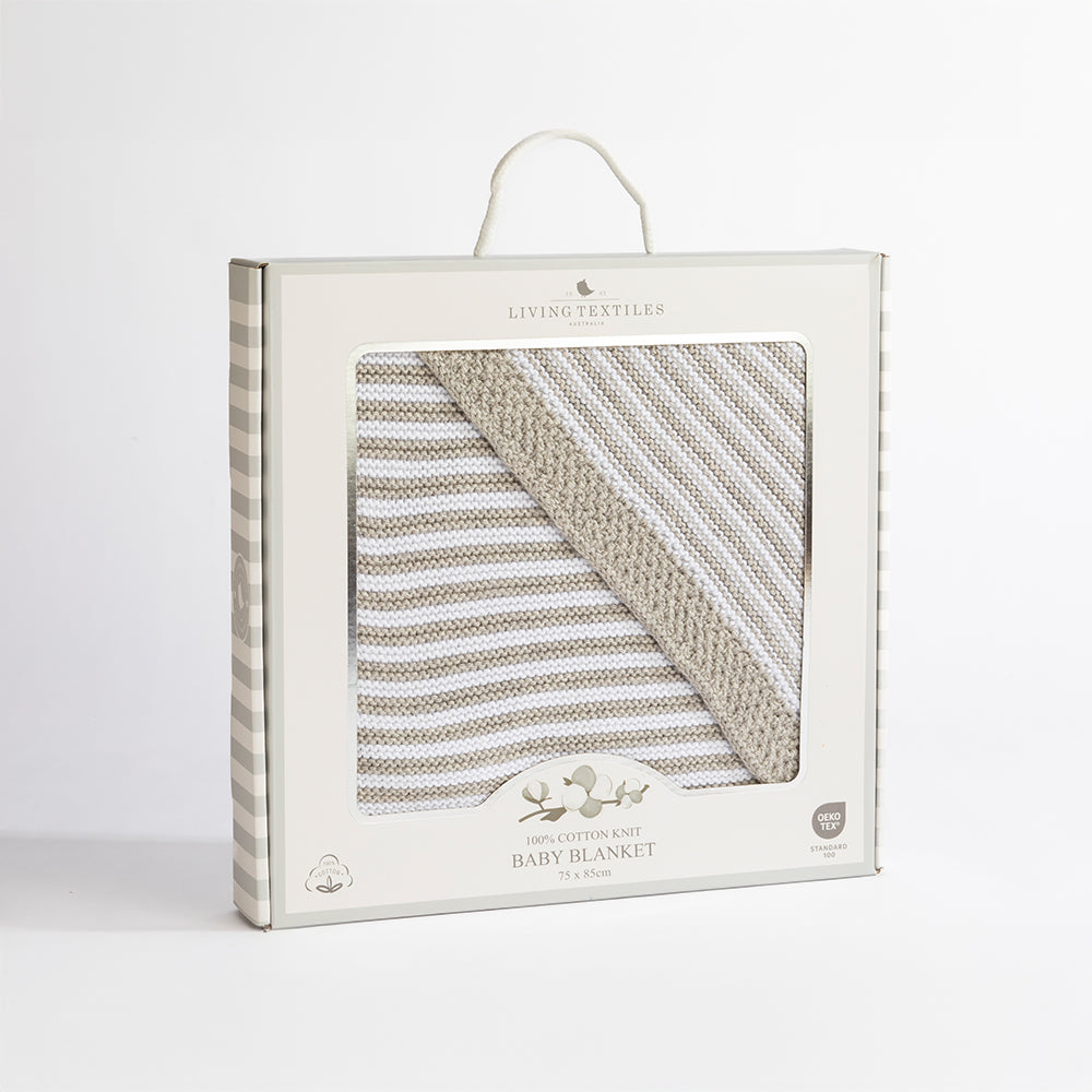 Crafted from 100% cotton pearl knit, this classic stripe blanket is lightweight and breathable.