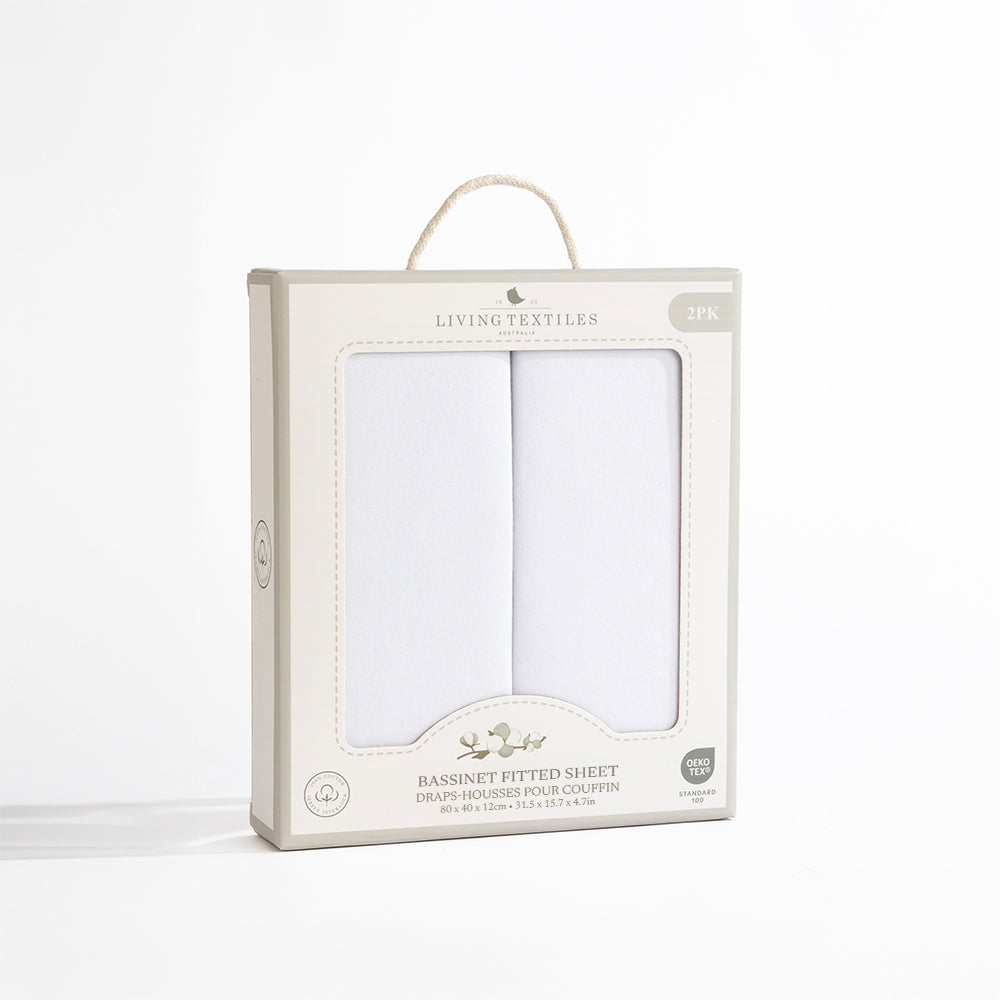 2 Pack Jersey Bassinet Fitted Sheet - White
