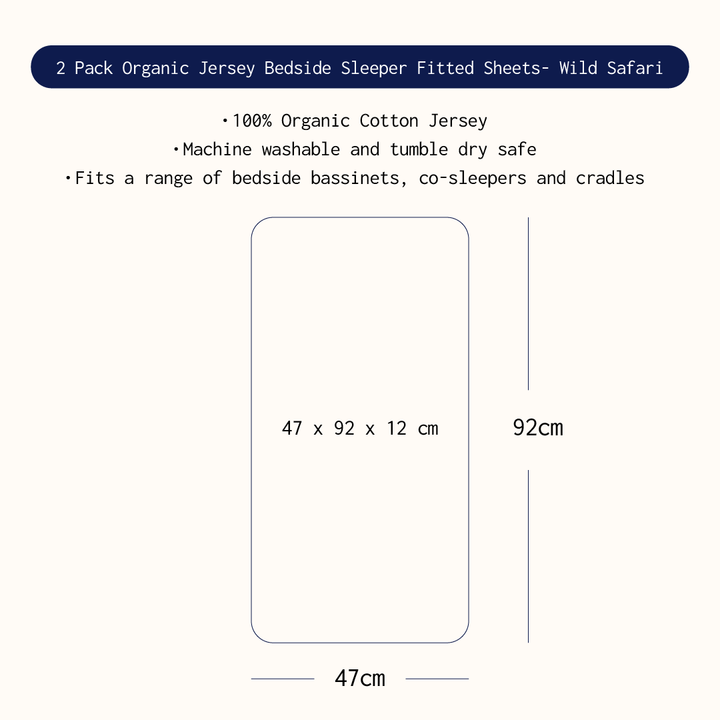 2 Pack Organic Bedside Sleeper Fitted Sheet - Wild Safari