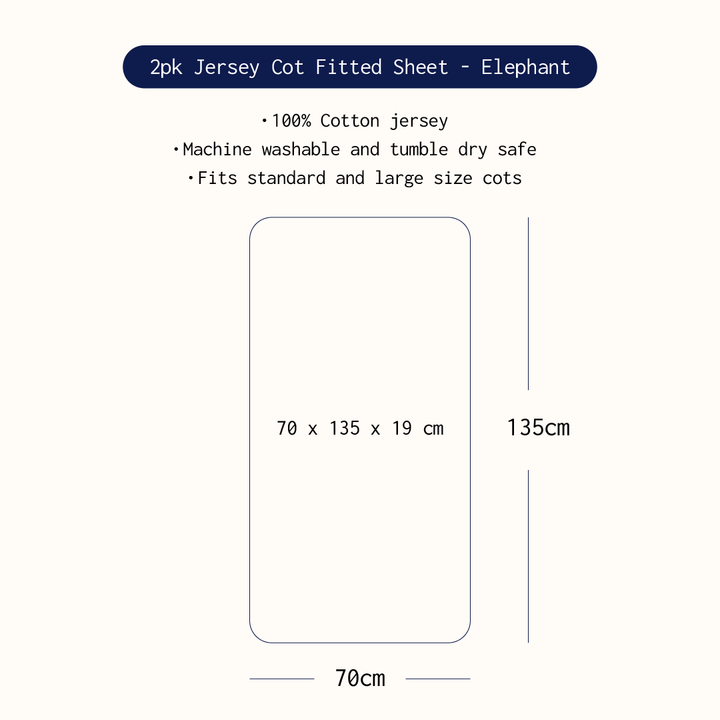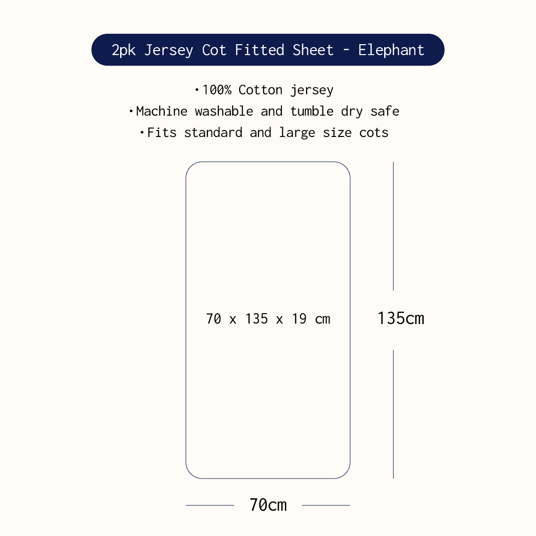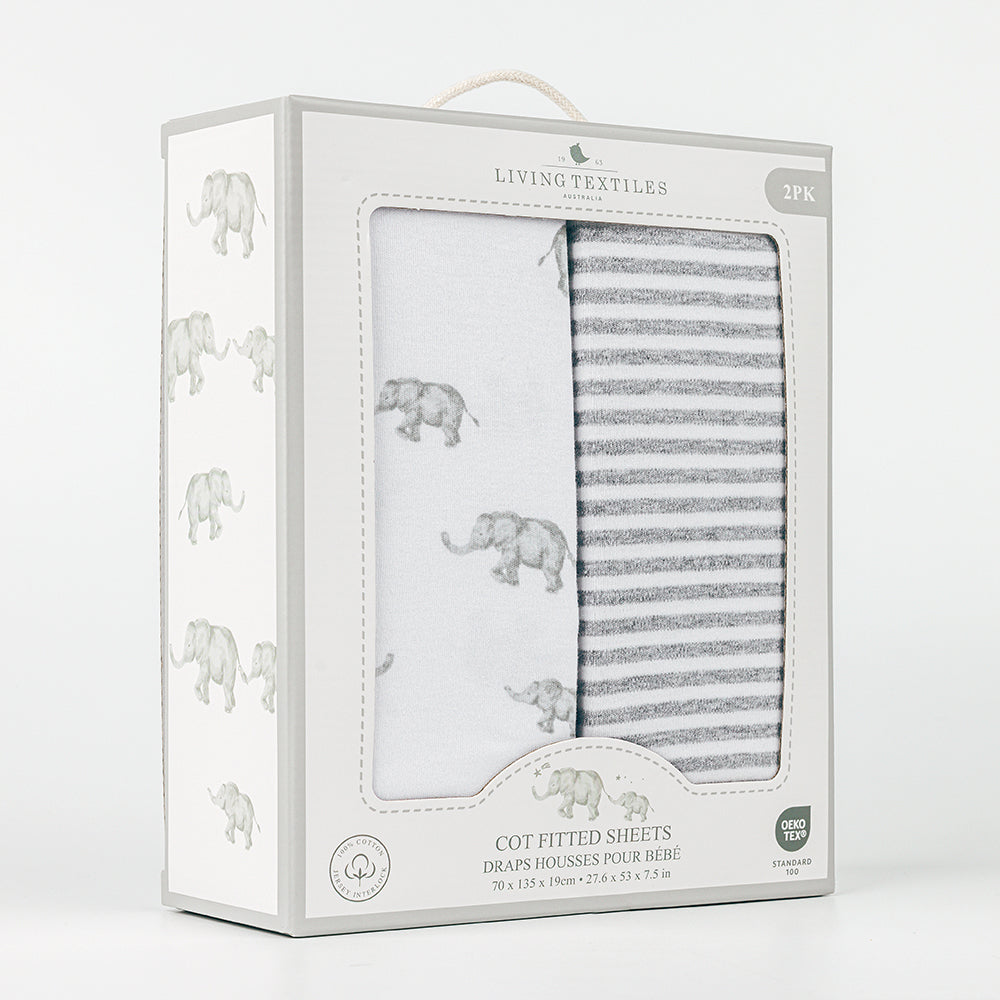 2 Pack Jersey Cot Fitted Sheet - Watercolour Elephant
