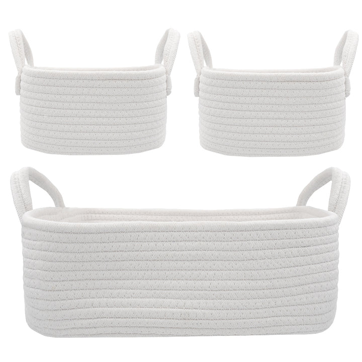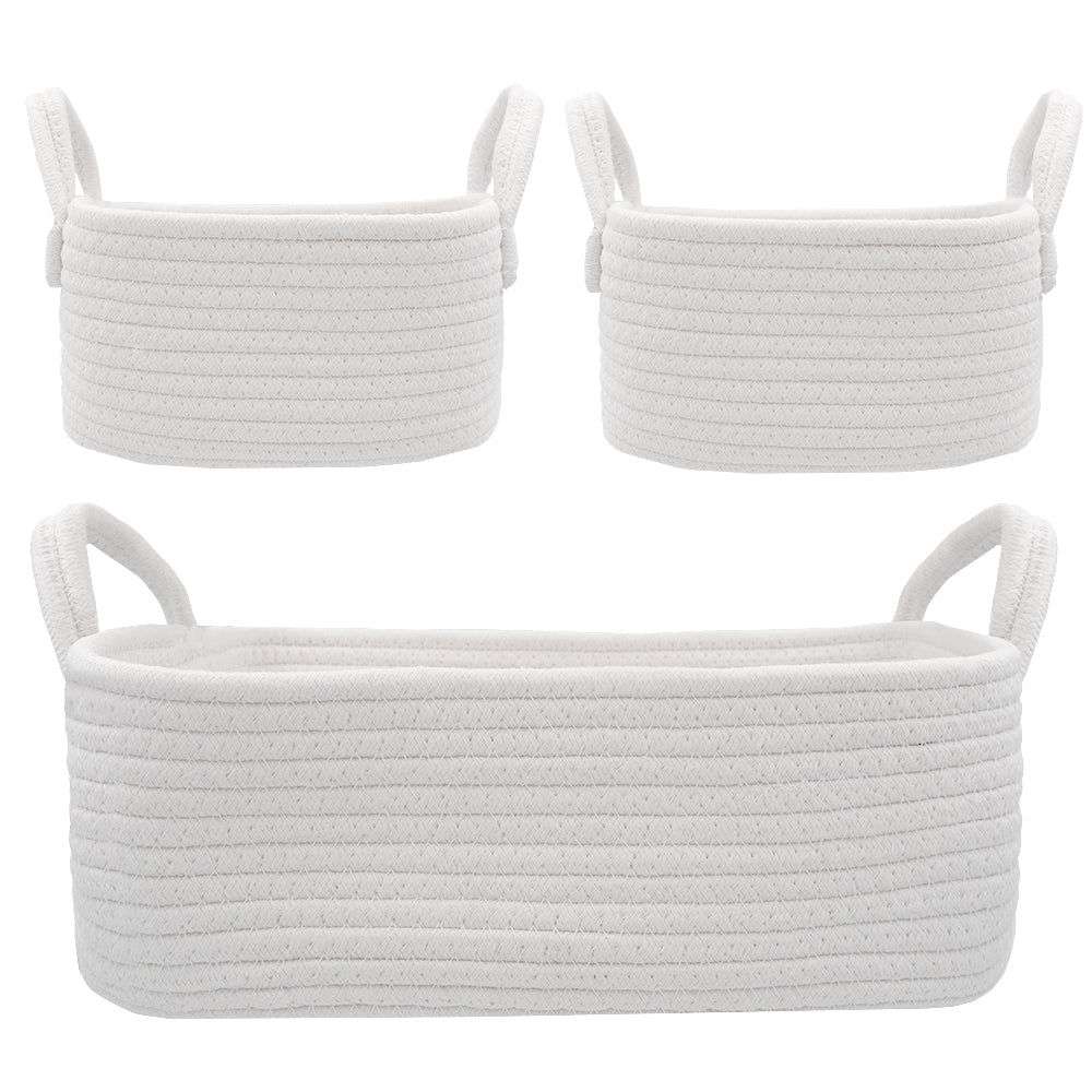Keep your nursery neat and tidy with this 100% cotton rope 3-piece storage set.