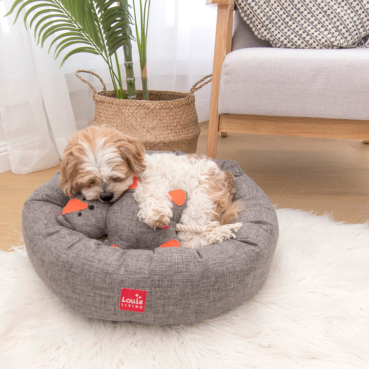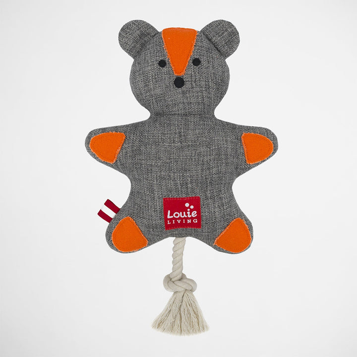 Made from tough textured woven fabric with reinforced edges that's durable yet easy on your pets gums, it features a fun squeaker and rope tail for tun-of-war games.