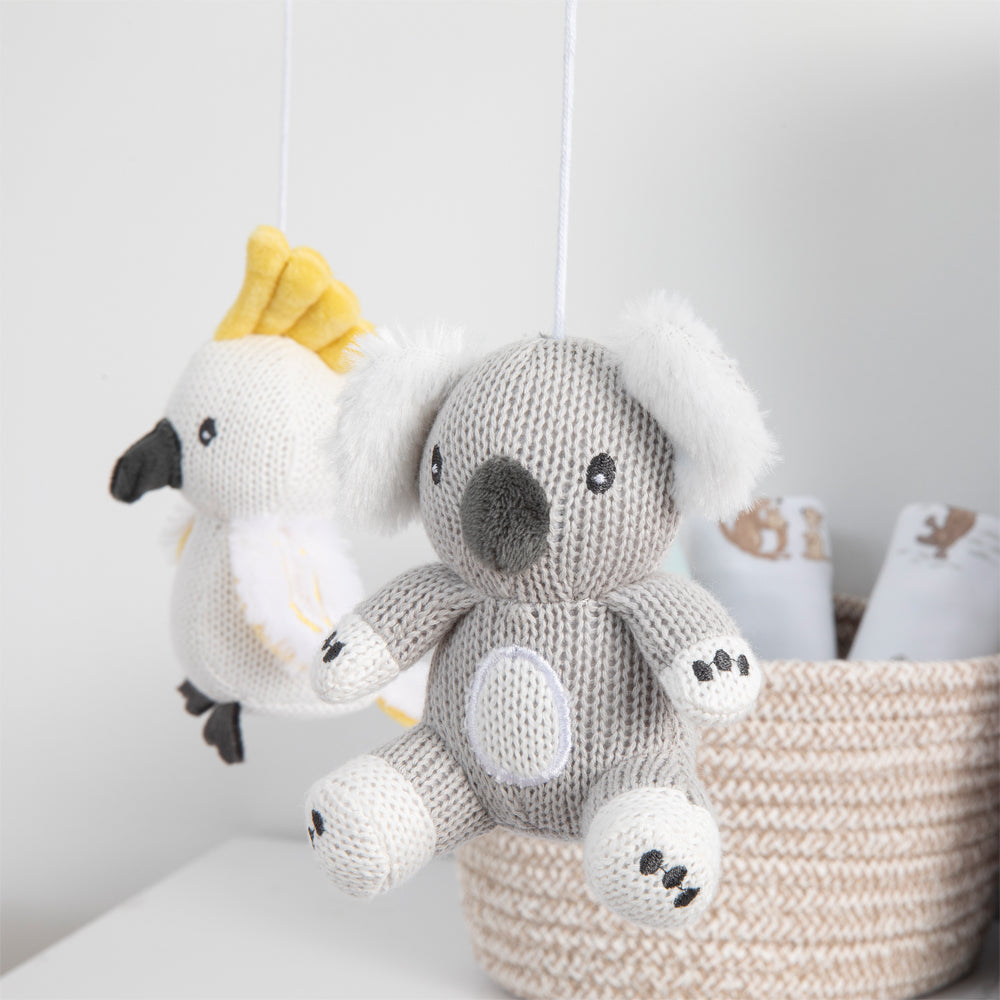 Little ones are going to love watching these adorable Australian animals gently rotate overhead to the soothing tune of Brahms’ Lullaby as they drift off to sleep. With exquisite detailing, this beautiful musical cot mobile adds the perfect finishing touch to your nursery.