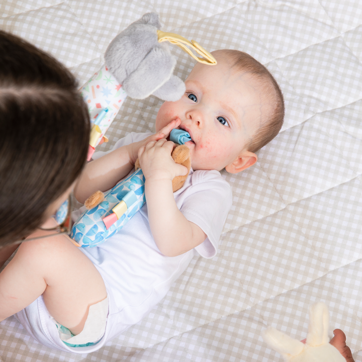 Hello World suitable for bubs aged 0 to 3 months old outlines a foundation of core skills that will develop over the coming year. In this box we have carefully curated 5 play offerings to help your little one with the initial concepts of coordination and building strength in their hands, whilst providing visual stimulation to keep them occupied and entertained.