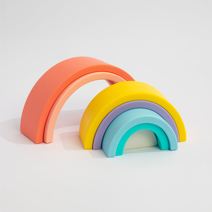 Build rainbows, towers, archways and sculptures with this cool, colorful rainbow stacker.