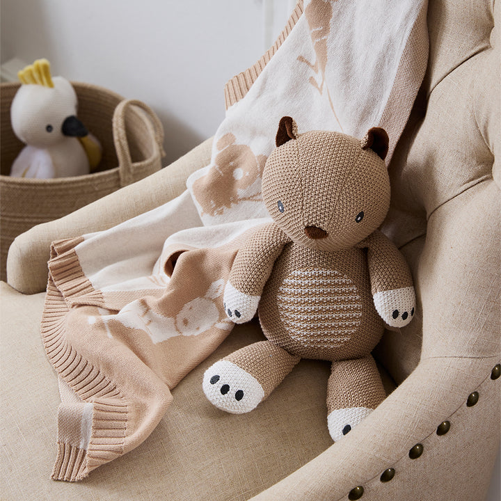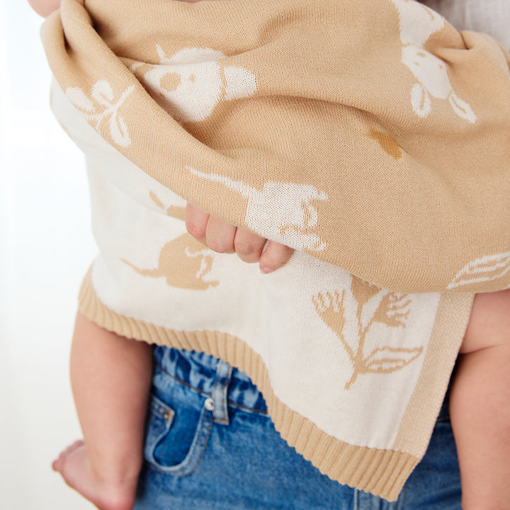 Keep baby warm and snuggly with our irresistibly soft 100% cotton knit pram blanket. Crafted from beautifully breathable cotton, this blanket feels gentle against delicate skin while allowing airflow to keep baby cozy without overheating. The soft knit texture adds warmth without weight, making it perfect for pram outings, bassinet naps and snuggles on the lounge.