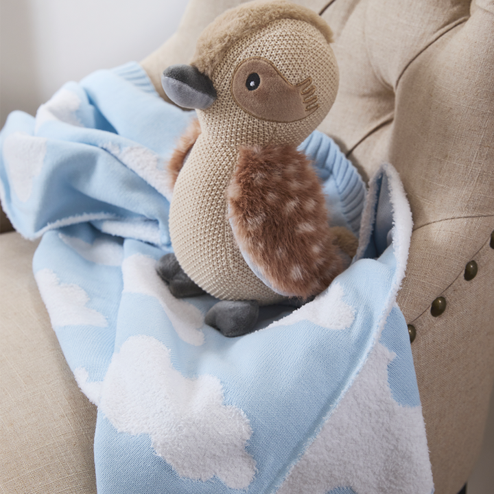 Keep baby warm and snuggly with our irresistibly soft 100% cotton knit pram blanket. Crafted from beautifully breathable cotton, this blanket feels gentle against delicate skin while allowing airflow to keep baby cozy without overheating. The soft knit texture adds warmth without weight, making it perfect for pram outings, bassinet naps and snuggles on the lounge.