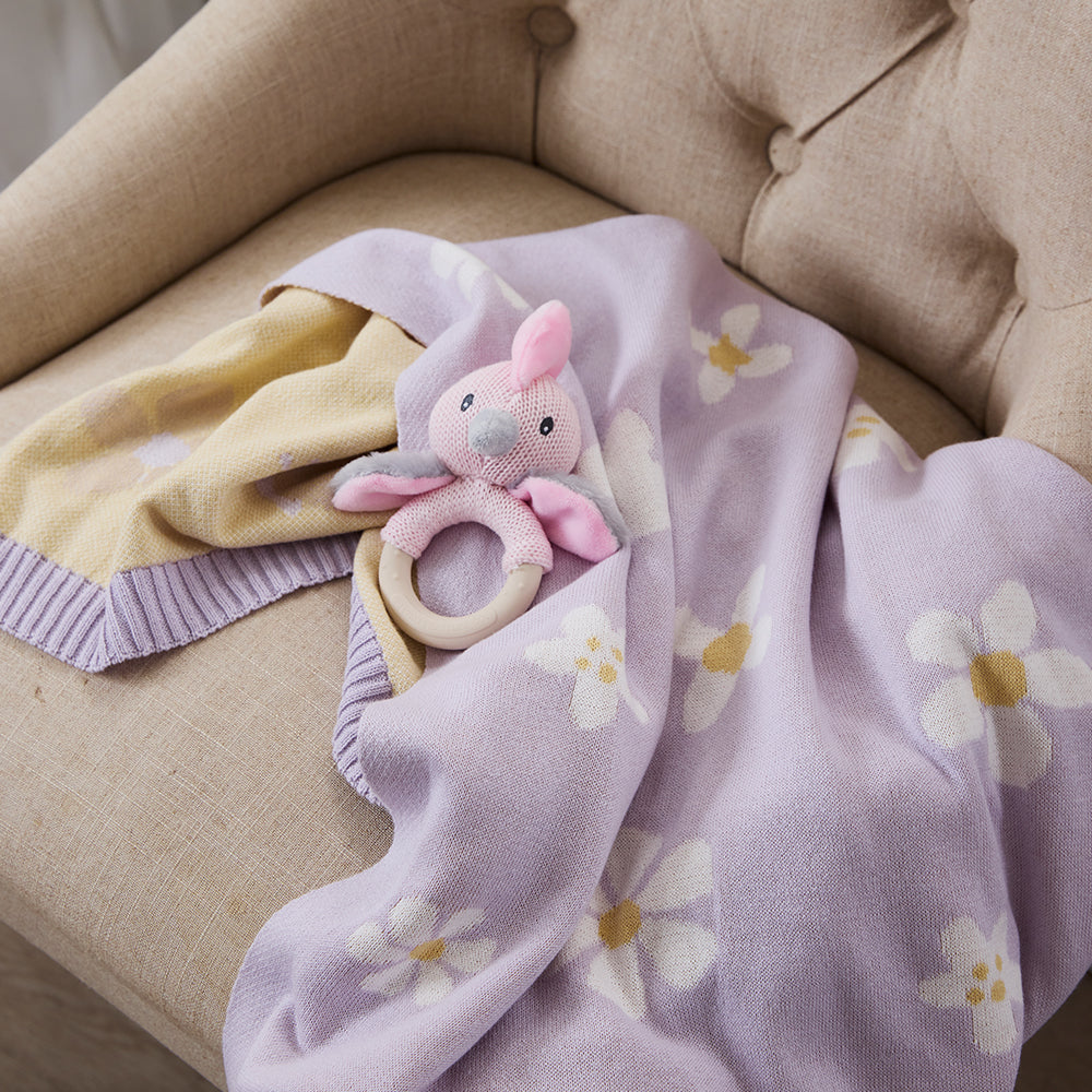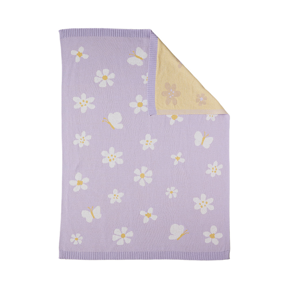 Pram Knitted Blanket - Lilac Daisy Dreams
