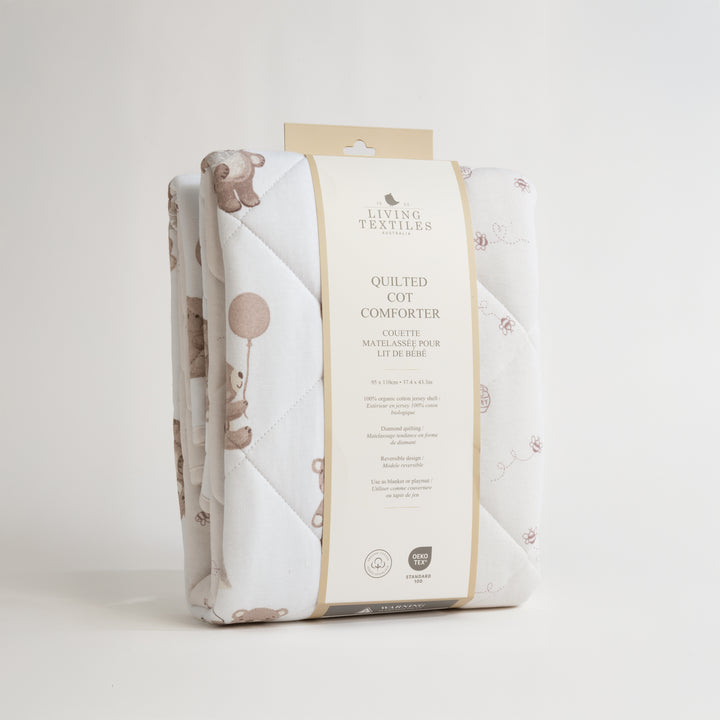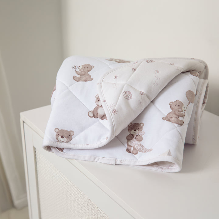 Reversible Quilted Cot Comforter - Cuddly Bear