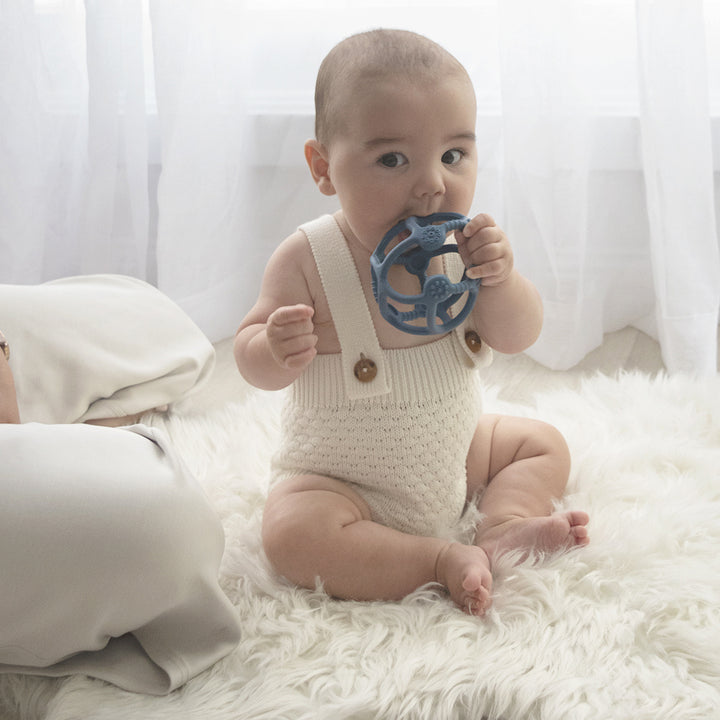 This Silicone teething ball is the perfect partner for littles one who have started to teeth. The easy-to-hold design and light soft silicone frame is great for little hands to grip and explore. Made from BPA-free, food-grade silicone, your baby can safely chew to relieve aching gums.