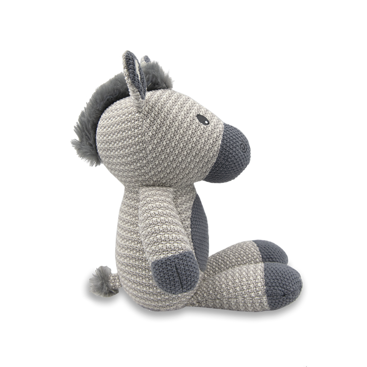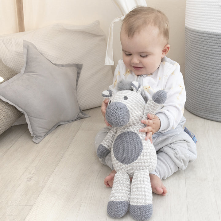 Delight your little one with our sweet Zac the Zebra knitted toy.